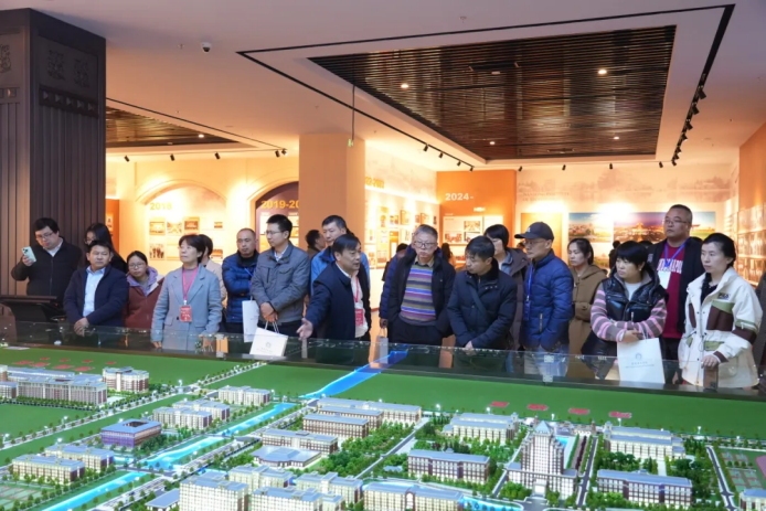会后,PA视讯国际科技集团董事长张福德、总经理唐佩随队和与会人员一起参观了南通理工学院的数智展馆、张謇教育文化馆等地并合影留念。